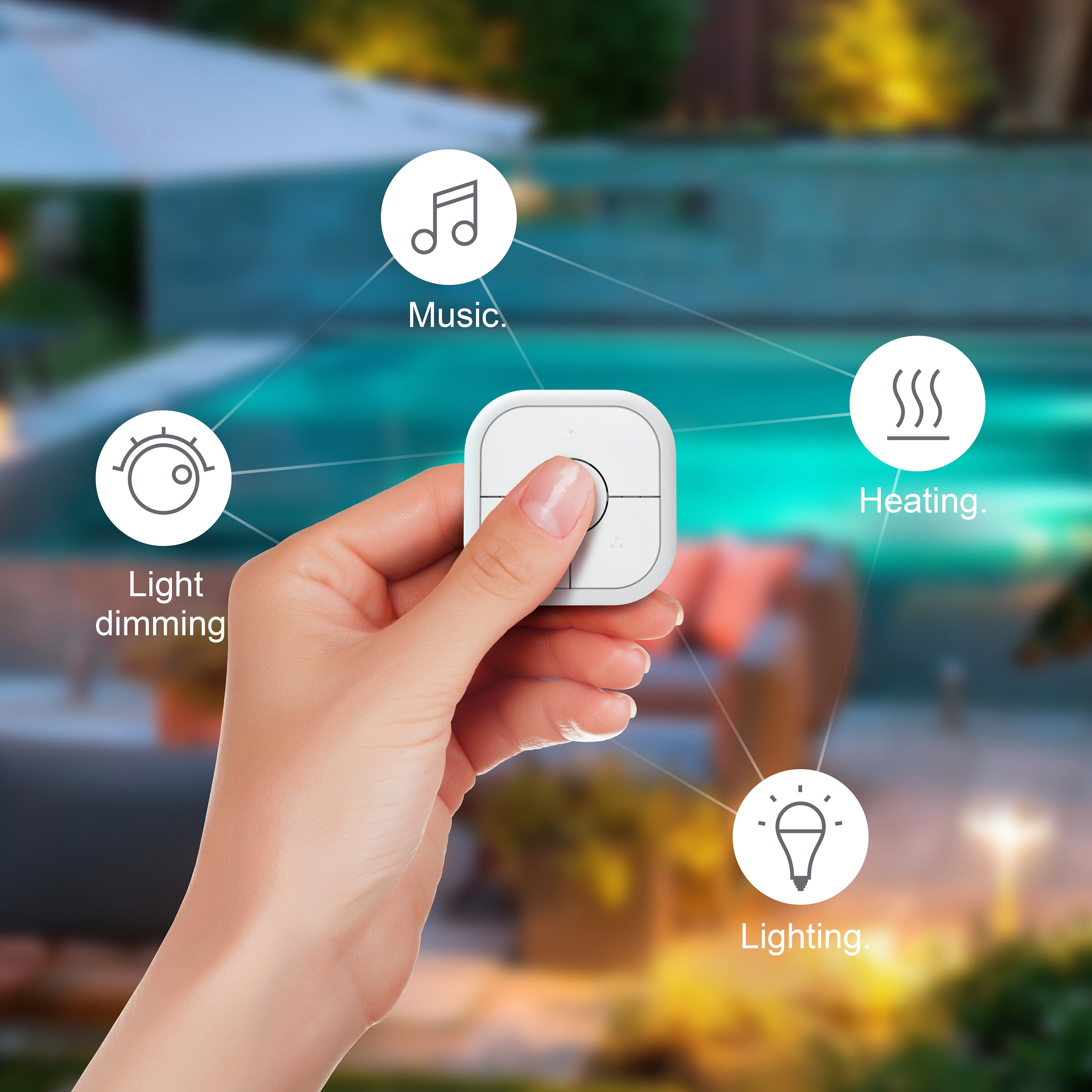 Control your home. With a push of a button. Apps aren’t always convenient. Voice control isn’t always suitable. Remote controls are always on hand and always for everyone. With NanoMote Quad, everyone in your home has easy control of your smart home whether they’re at home, coming or going.