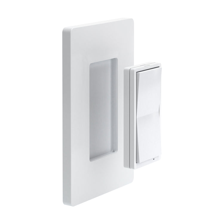 While it looks like a wall switch and operates like a wall switch, what makes illumino WallMote 7 truly powerful is that it is really a remote control. Battery powered, you just need to stick it on a wall or surface to install it. Once synced with your hub, you can control any dimmer, switch or automation routine by using illumino WallMote 7 as you would any other switch.